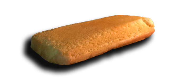 masa dulce horneada, esponjosa, con forma cuadrada.
