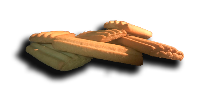 Masa dulce horneada, de textura seca y color amarillo tostado, con forma plana y rayada.