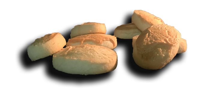 Masa dulce horneada, de textura seca, color amarillo tostado y forma ovalada.
