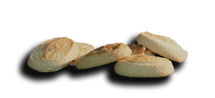 Masa dulce horneada, de textura seca, color amarillo tostado y forma
